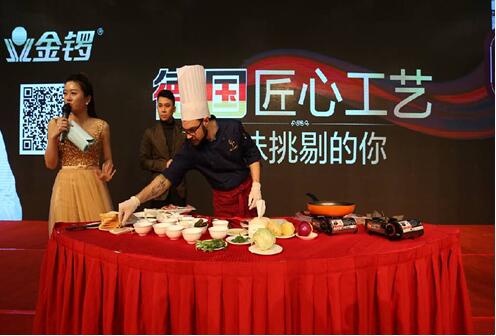 在現(xiàn)場,汪涵更是以無淀粉產品代言人的身份和現(xiàn)場經(jīng)銷商進行了互動,《豬豬俠》人偶豬豬和菲菲也以金鑼哈啰伙伴系列產品代言人的身份進行了萌翻眾人的表演,《畫江湖之不良人》主創(chuàng)團隊則以cosplay的形象出現(xiàn)在舞臺上,帶來了一場如夢似幻的視覺盛宴。而YY當紅大胃王女主播袁瑞彤PK三壯漢,10分鐘吃下70碗金鑼肉粒多拌面更是將現(xiàn)場氣氛推向高潮;外籍大廚阿爾伯特用德斯克制作三道色香味俱全的德式美食,也讓臺下經(jīng)銷商欲罷不能。這些豐富的代言形式,讓在場的經(jīng)銷商全部耳目一新,留下了深刻的品牌印象。也正是在代言人的推動下,短短兩個小時訂貨量便突破了1.15億。